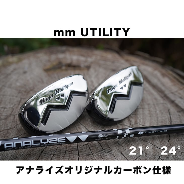 「マジックマリガン(mm)ユーティリティ」には、専用シャフトとして70グラム台の「アナライズ UT70」カーボンシャフトをラインナップしています。切り返しでの間が取りやすく、先端のしなやかな動きで打ち出し角度のアップにも貢献するナチュラルな振り感が特徴のシャフトです。なお、グリップは「スタンダード」と「ミッドサイズ」を選択可能です。